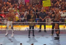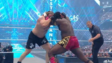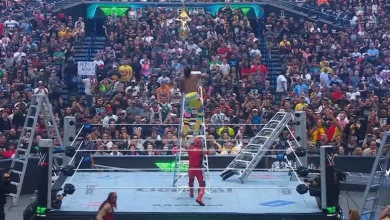 “واثناء هذا تبدأ موسيقى لويس انجليس ويخرج. ويقول إنه يريد التحدث إلى الجماهير ، ثم يقول إن ناكامورا يلعب كذبتين وحقيقة والحقيقة هي أنه كان يختبئ في الظل ،ومن ثم تبدأ موسيقى ذا ميز ويخرج. ويقول إنه كان مخطئًا في القول إن انجليس كان مجرد موهبه عابره ويقوم بالسخرية منه ،ويتبادلان الحديث وفى النهاية يتم الاعلان عن مواجهة بينهم”.